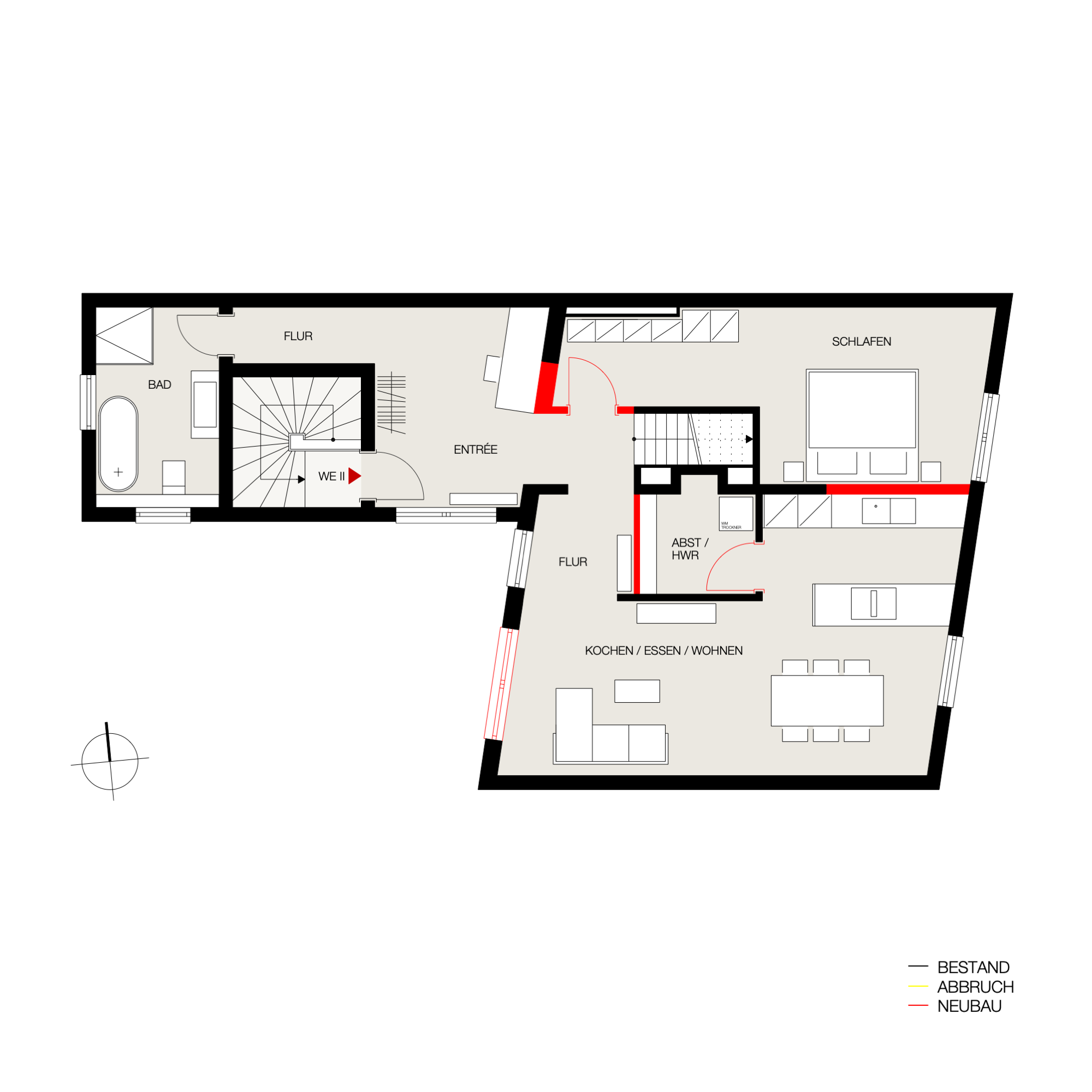 Umbau eines Einfamilienhauses zu einem Zweifamilienhaus